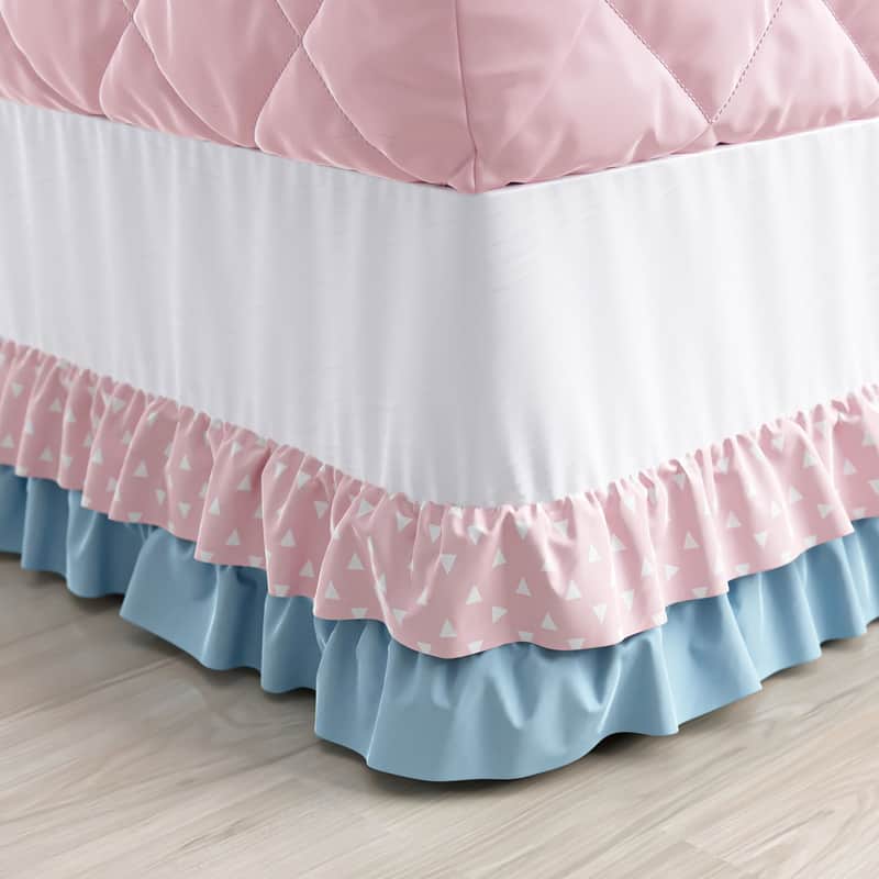 Saia de Cama Infantil Solteiro Babado Duplo Rosa e Azul da Grão de Gente: R$ 108,79 no PIX ou R$ 127,99 em até 12x sem juros. Frete grátis acima de R$499. Entrega rastreada com garantia de 7 dias para trocas.