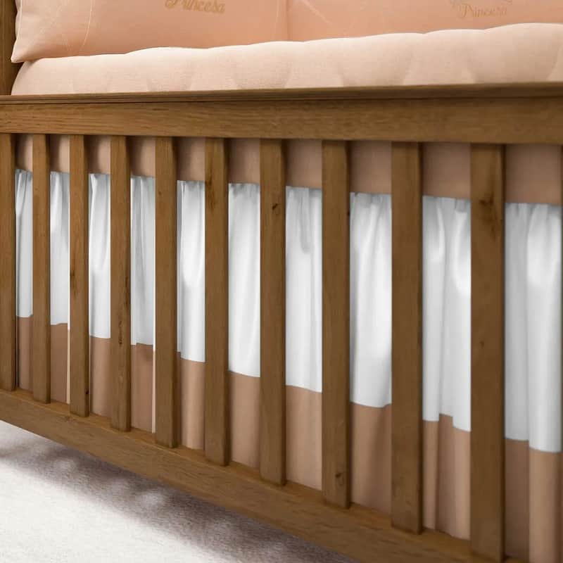 A saia de berço é o toque final na composição do kit berço, cobrindo a parte inferior do berço americano com elegância. Produzida em tecido de alta qualidade, a saia adiciona um acabamento visual refinado ao quarto do bebê. Disponível em babado franzido, pregas e modelos lisos, combina perfeitamente com protetores, rolinhos e lençóis do mesmo tema. Na Grão de Gente, você encontra opções para berço padrão americano e mini cama, sempre coordenadas com os kits mais vendidos.