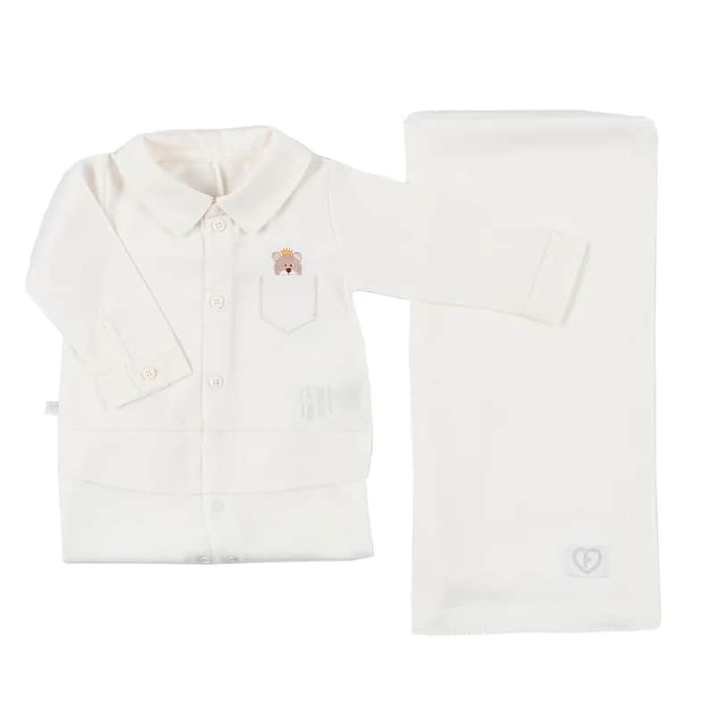 Saída de Maternidade Fofinho com Detalhe Bordado Off White