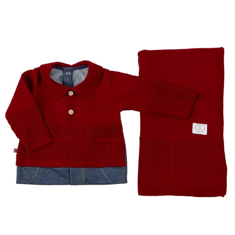 Saída De Maternidade Fofinho Com Detalhe Bordado Vermelho