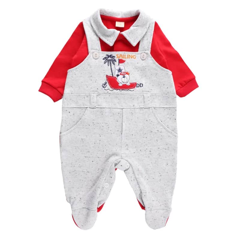 Saída Maternidade Din Don Bordado Urso com Barco Vermelho