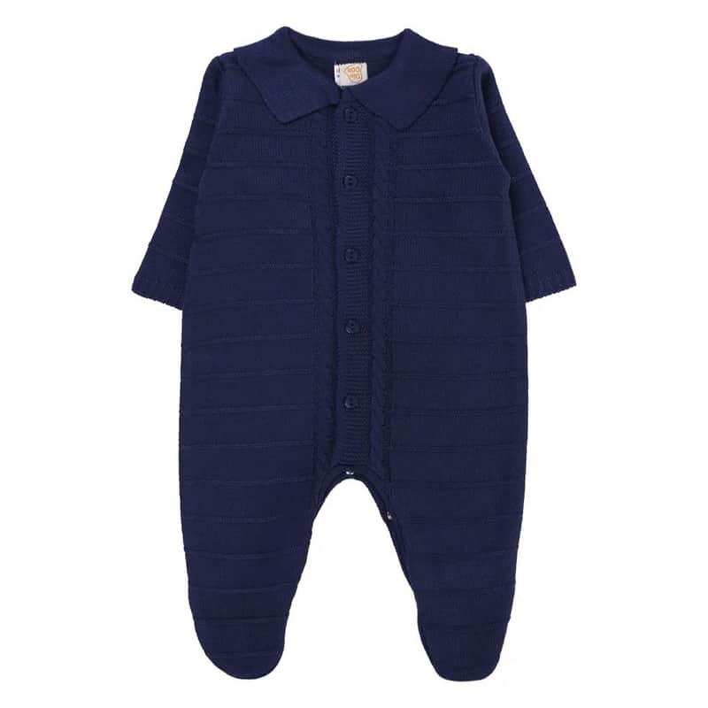 Saída Maternidade Din Don Trançada com Botões Azul Marinho
