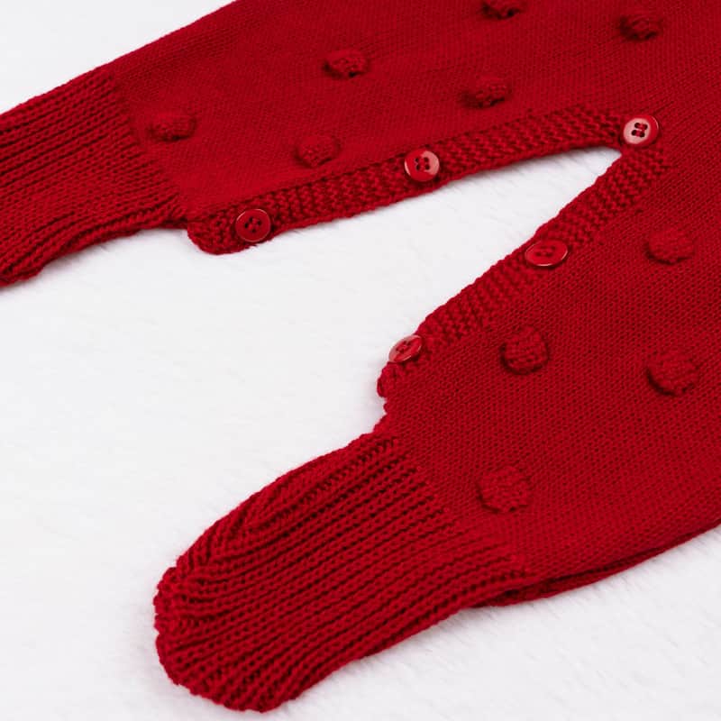 • Macacão de tricot bolinha com abotoamento nas costas e no cós para facilitar as trocas de fraldas