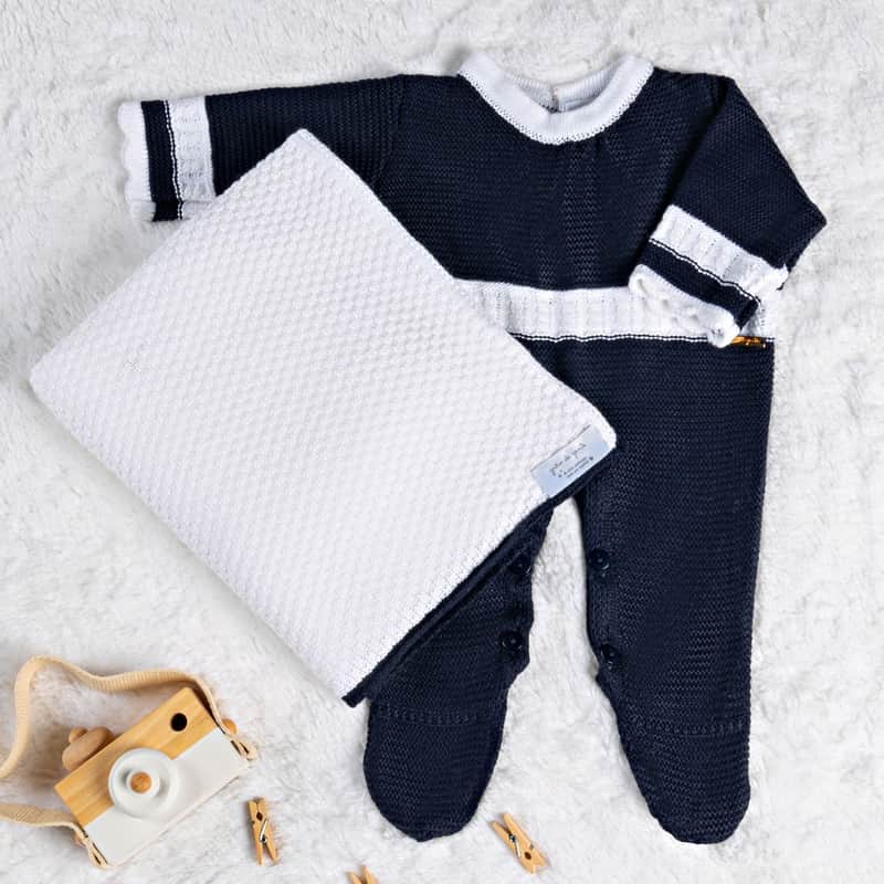 Saída Maternidade Tricot Macacão Azul Marinho 02 Peças da Grão de Gente: R$ 251,59 no PIX ou R$ 295,99 em até 12x sem juros. Frete grátis acima de R$499. Entrega rastreada com garantia de 7 dias para trocas.