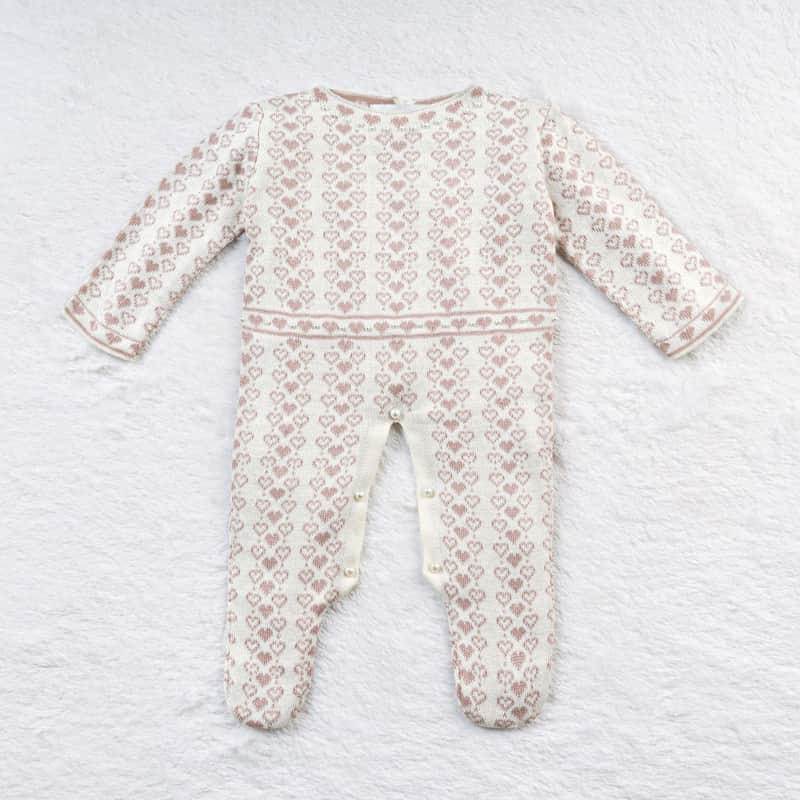 Saída Maternidade Tricot Mademoiselle Coração Nude e Azul Marinho 02 Peças