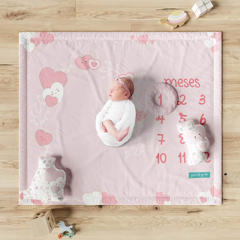 Tapete Mesversário Amor da Mamãe Rosa da Grão de Gente: R$ 127,49 no PIX ou R$ 149,99 em até 12x sem juros. Frete grátis acima de R$499. Entrega rastreada com garantia de 7 dias para trocas.