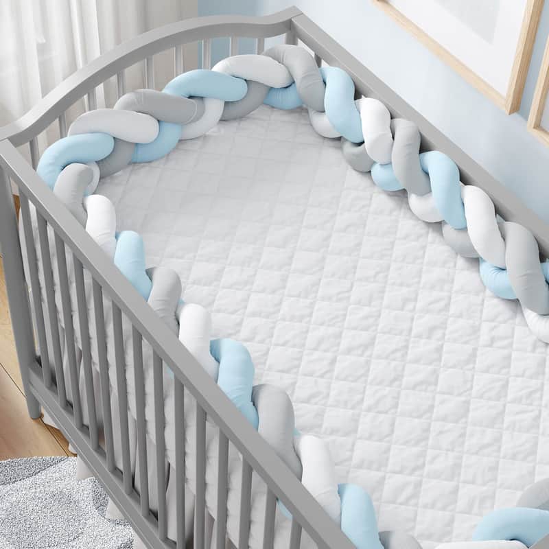 Trança Lateral Para Berço Branco Azul e Cinza 3,80M