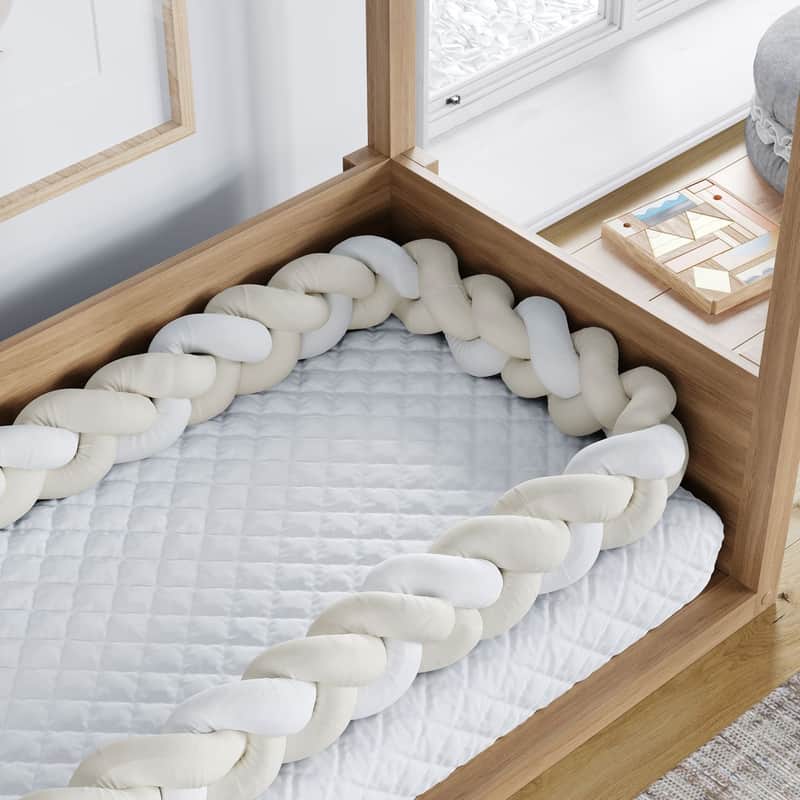 Trança Lateral Para Cama Montessoriana Solteiro Branco Cinza e Rosa 5,32M