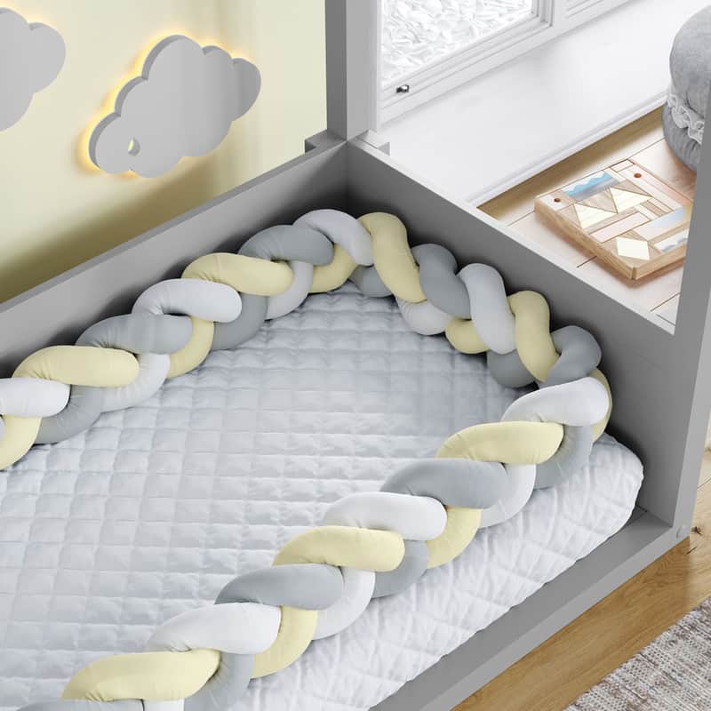 Trança Lateral Para Cama Montessoriana Solteiro Branco Cinza e Rosa 5,32M