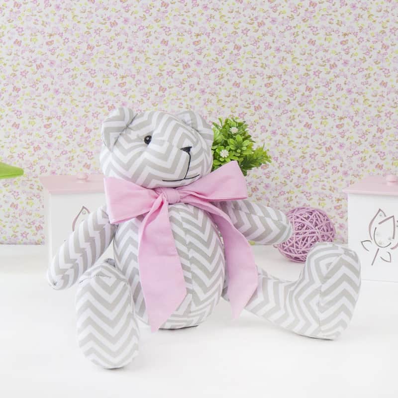 Ursa Chevron com Laço Rosa 34cm