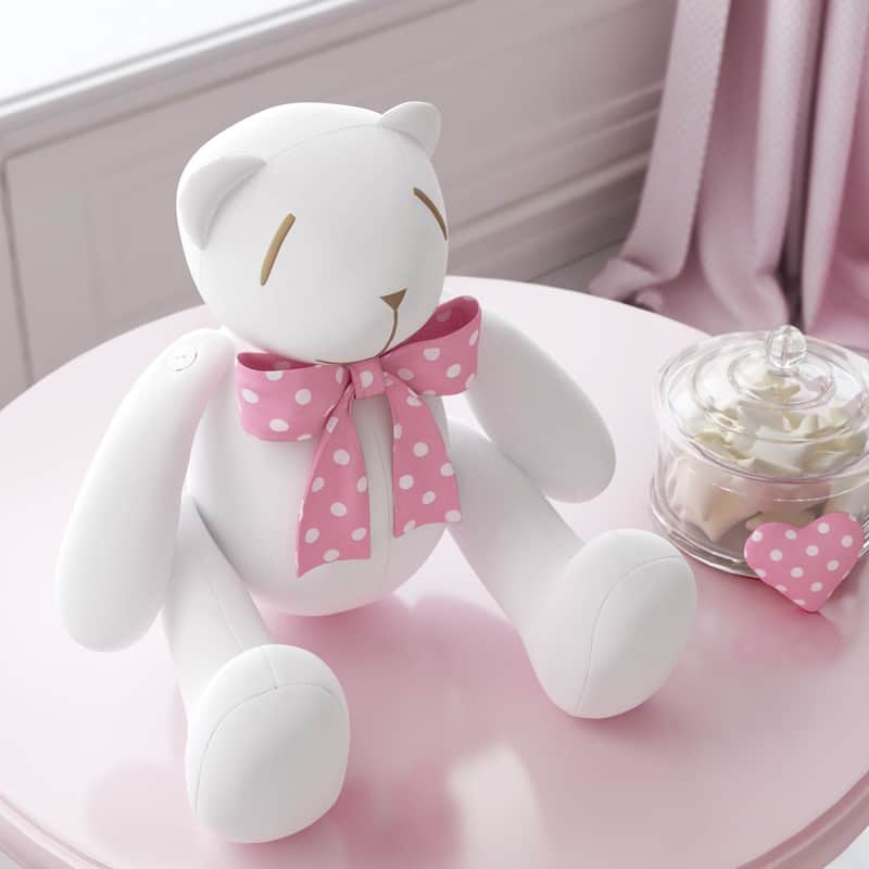 Ursinha Branca com Laço Poá Rosa 25cm