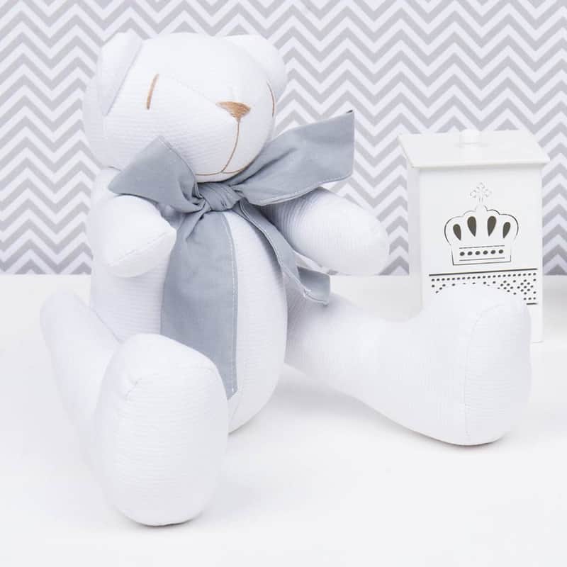 Urso Branco com Laço Cinza Escuro 34cm
