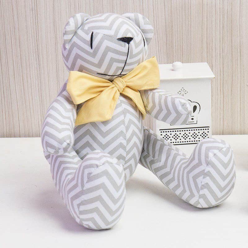 Urso Estampa Chevron com Laço Amarelo 34cm