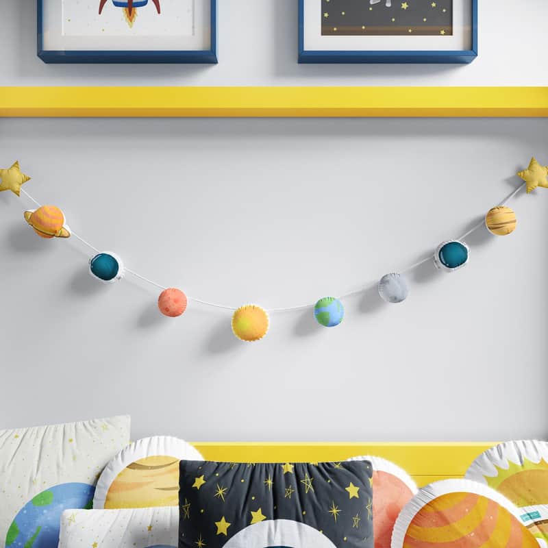 Para dar um toque lúdico e ainda mais criativo ao quartinho do pequeno astronauta, o Varal de Cama Planetas é a peça ideal.