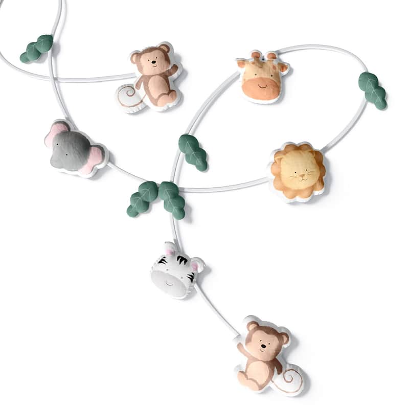 O Varal de Cama Safári Aquarela vai adicionar um toque lúdico e original no quarto montessoriano!