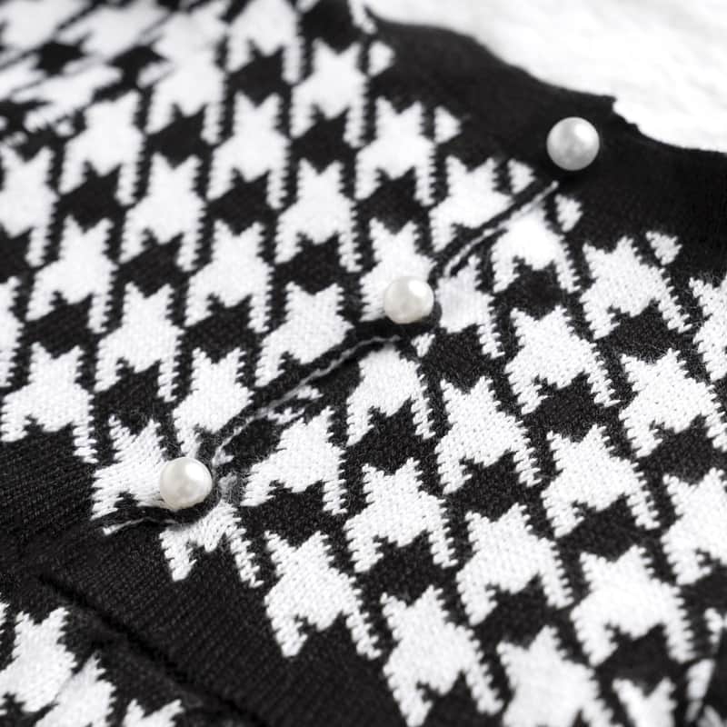 Vestido Tricot Jacquard Pied de Poule com Laço Preto